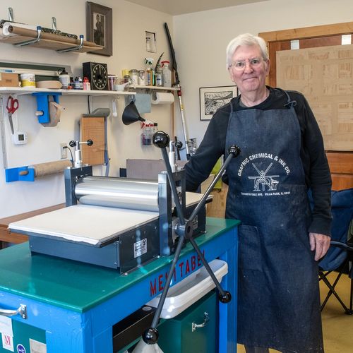 Stephen Goddard, originally from Altadena, California, is a retired curator of prints & drawings (Spencer Museum of Art, University of Kansas). He made his first prints as a child at the Pasadena Art Museum. He has studied printmaking at Pasadena City College, Grinnell College, the Minneapolis College of Art and Design, and the University of Iowa. His etchings and engravings are printed on a fifteen-inch Conrad etching press at his Estes Park studio. His activities as a photographer began when he was given his first camera at age twelve. He continues to work in both analog (film) and digital formats.